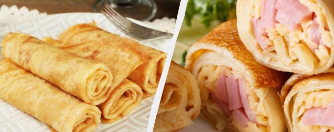 Gefüllte Pfannkuchen – ein universelles Gericht, das nicht langweilig wird, egal wie oft es zubereitet wird. Sie sind sowohl herzhaft als auch einfach in der Zubereitung. Wir schlagen vor, tolle Röllchen mit Käse und Schinken zu machen – eine solche Füllung für Pfannkuchen ist in Restaurants am beliebtesten. Ihr Rezept wird sicher auch Ihr Favorit werden.