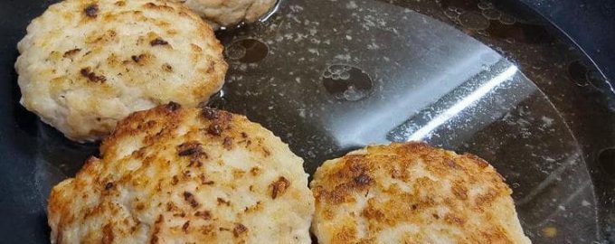 Nach dem Formen der Koteletts ist es besser, sie eine halbe Stunde in den Kühlschrank zu legen, damit sie in der Pfanne „greifen“ und nicht auseinanderfallen. Feuchte Hände sind in diesem Stadium nicht notwendig, Hauptsache, die Schnitzel werden nicht unnötig verschoben.