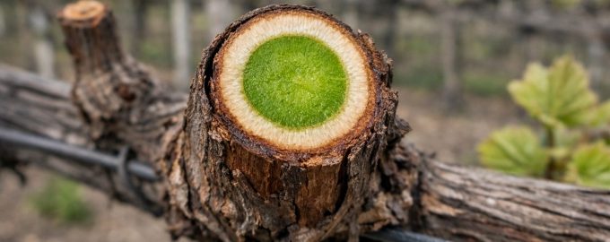 Überprüfen Sie den Schnitt der Rebe: Eine leuchtend grüne Farbe deutet auf Gesundheit hin, während eine braune oder bräunliche Farbe auf abgestorbenes Gewebe hinweist.