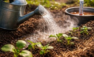 Wenn Sie nur ein normales tiefes Gefäß zur Verfügung haben, können Sie einen bewährten Trick anwenden, indem Sie ein Backblech mit Wasser auf die unterste Ebene des Ofens stellen. Der entstehende Dampf mildert die Wirkung der trockenen Hitze ab, verhindert ein vorzeitiges Aushärten des Belags und fördert das Durchbacken selbst der dichtesten Schichten.