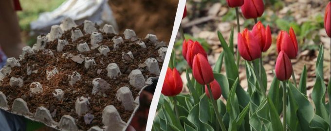 Damit Tulpen im Blumenbeet schön aussehen und nicht krank werden, pflanzen Sie sie in Eierkartons.
