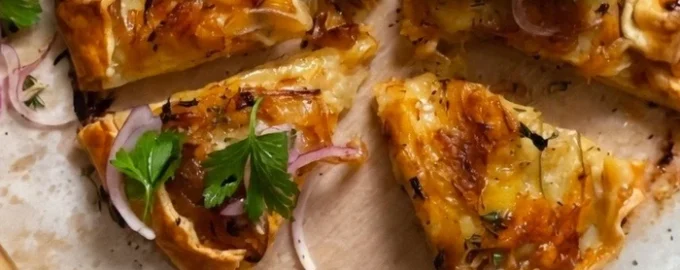 Dieser Kartoffelkuchen mit karamellisierten Zwiebeln und Käse ist ein Fest für die Geschmacksnerven. Der zarte Teig, die süßen Zwiebeln, der cremige Käse und der aromatische Thymian machen sie vielseitig einsetzbar. Fügen Sie einen leichten Salat als Ausgleich hinzu und genießen Sie jeden Bissen.