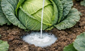 Gießen Sie nur am Morgen, damit der Boden unter dem Kohl bis zum Abend trocken ist.